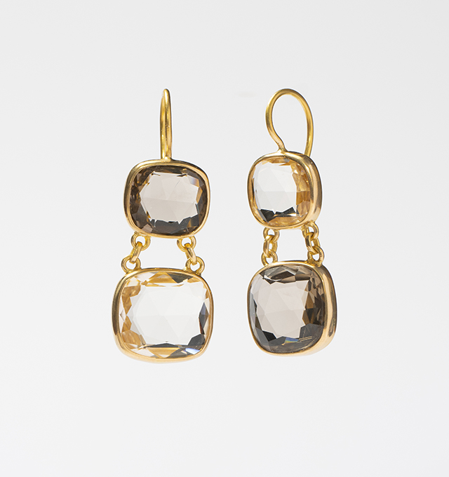 20k gold earrings Aqua Marine opaque & Smoky Quartz